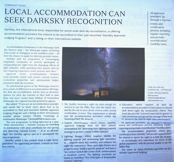 This months article in The Martinborough Star detailed the potential that local business could tap into that compliment the dark sky reserve.